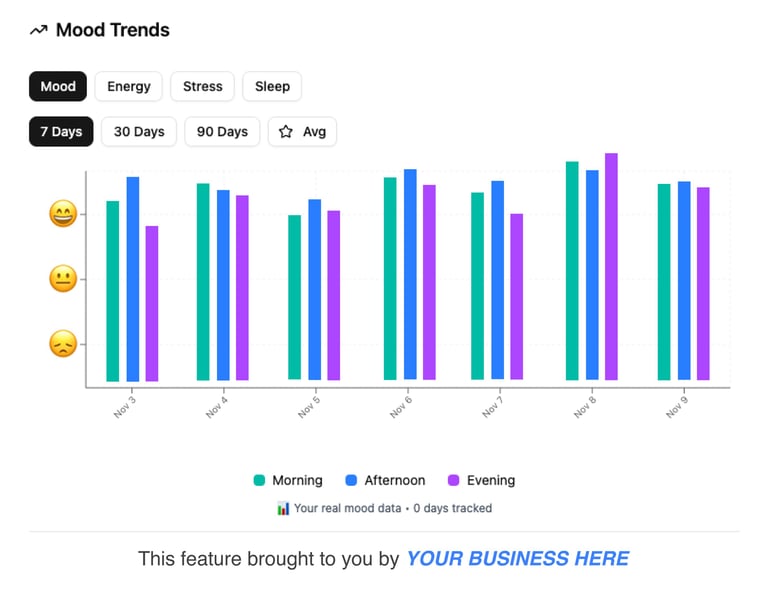 Visual analytics that help users understand their emotional patterns over time, identifying triggers and positive trends.